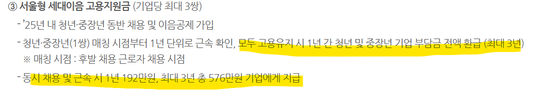 | 대상 | 청년 신규채용 | 중장년 신규·재채용 | 청년+중장년 동반 채용 |
